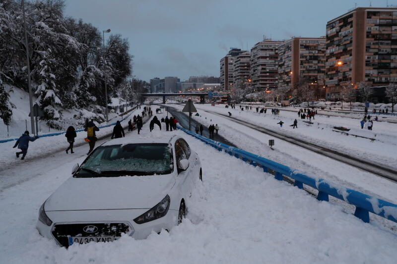 In the Madrid area, rescuers reached 1,500 people trapped in cars, while police broke up a large snowball fight after the authorities appealed for citizens to stay at home for risk of accidents or spreading the coronavirus.