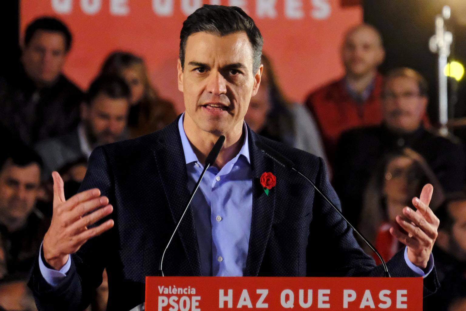Spain's Prime Minister and Socialist Workers' Party candidate Pedro Sanchez attends an electoral campaign closing rally in Valencia, Spain, on April 26, 2019.