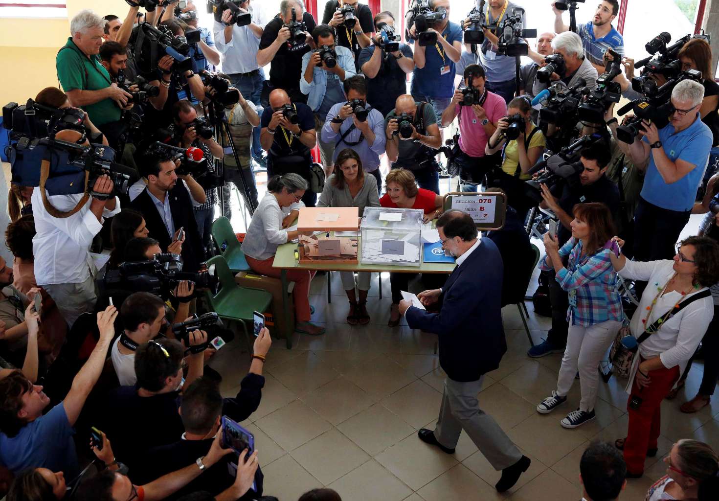 Spain's acting prime minister and People's Party leader Mariano Rajoy arrives to vote in Spain's general election in Madrid, Spain, on June 26, 2016.