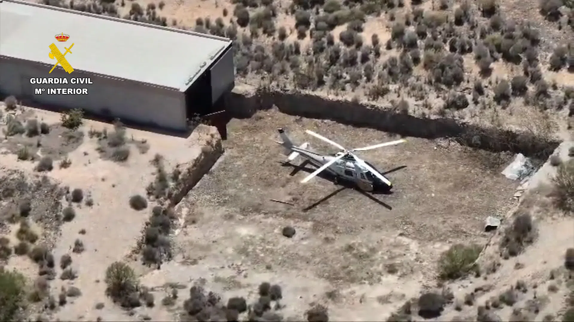 Police seized one helicopter in an isolated warehouse, along with 657kg of hashish, five firearms, cash and vehicles during raids in the provinces of Malaga, Almeria and Murcia.