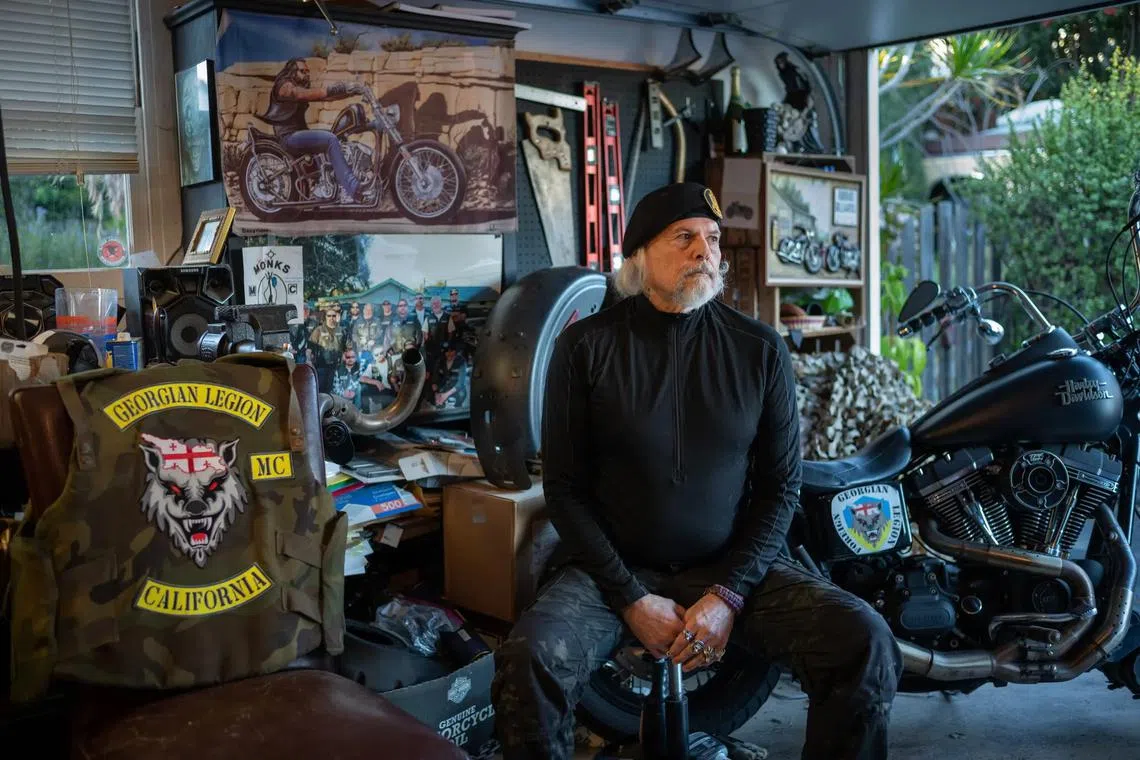 Mr Grady Williams in his garage in Santa Barbara, California, in February 2023. “I shot rifles since I was 13,” he said of his decision to go to Ukraine. “I had no excuse to say, ‘Well, I shouldn’t go.’”
