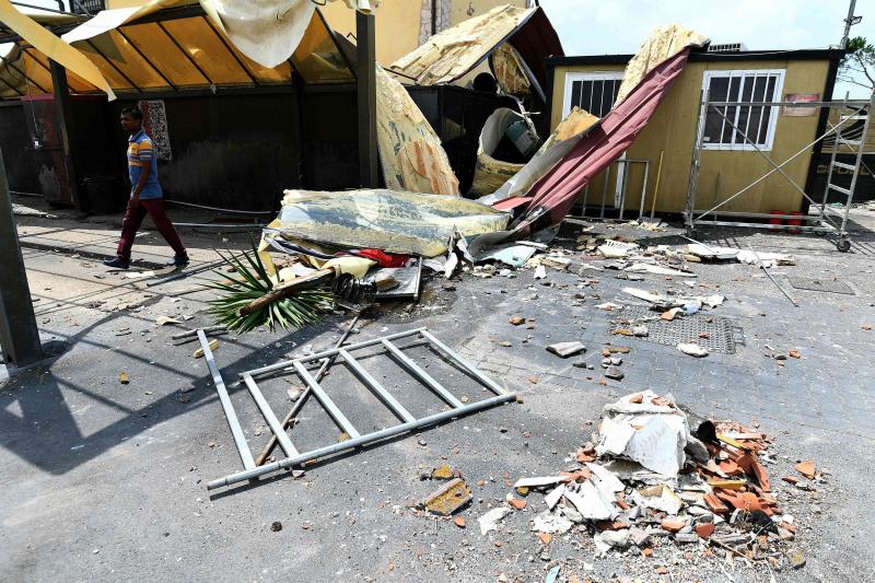 A man walks past wreckage at a damaged fuel station in Focene near Fiumicino, some 40km south-west of Rome, on July 28, 2019