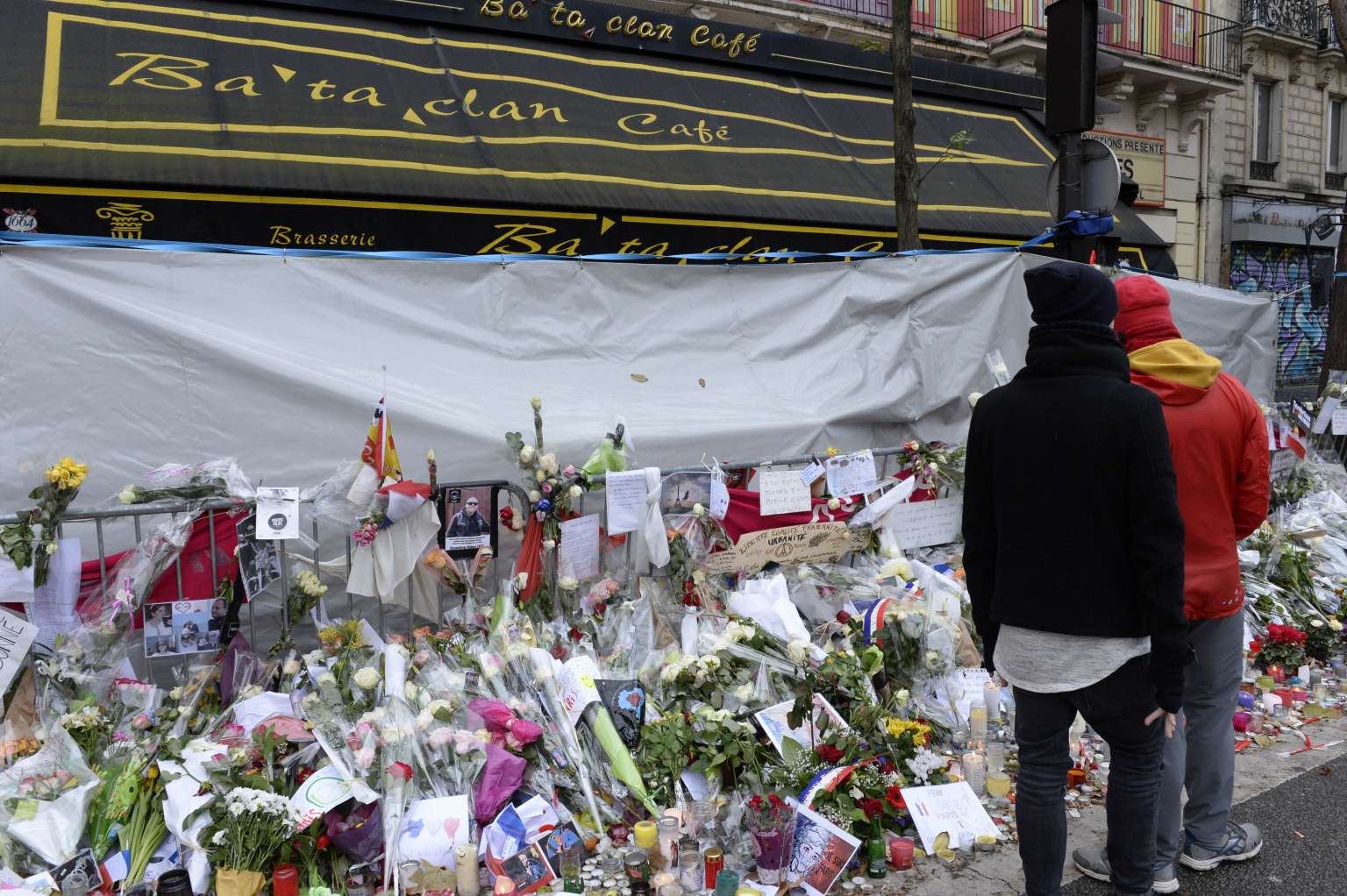 The memorial set-up in front of the Bataclan Concert Hall on Nov 29, 2015 in Paris.