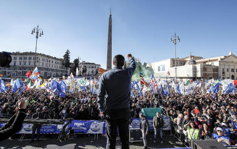 Surging in the polls, Italy's Matteo Salvini stages mass Rome rally