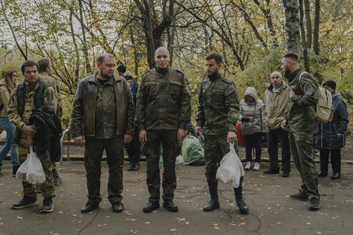 Conscripted men outside a recruiting office in Moscow on Nov 10, 2022. Capitalising on reports of low Russian morale, Ukraine has begun offering enemy troops detailed instructions on how to make their way over the battlefield and lay down their arms.