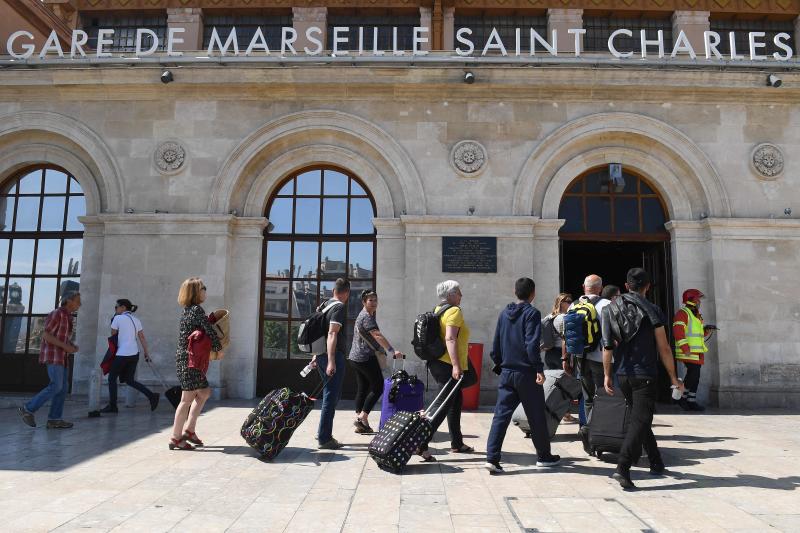 People enter the Gare Saint Charles train station in Marseille on May 19, 2018 after it was briefly evacuated.