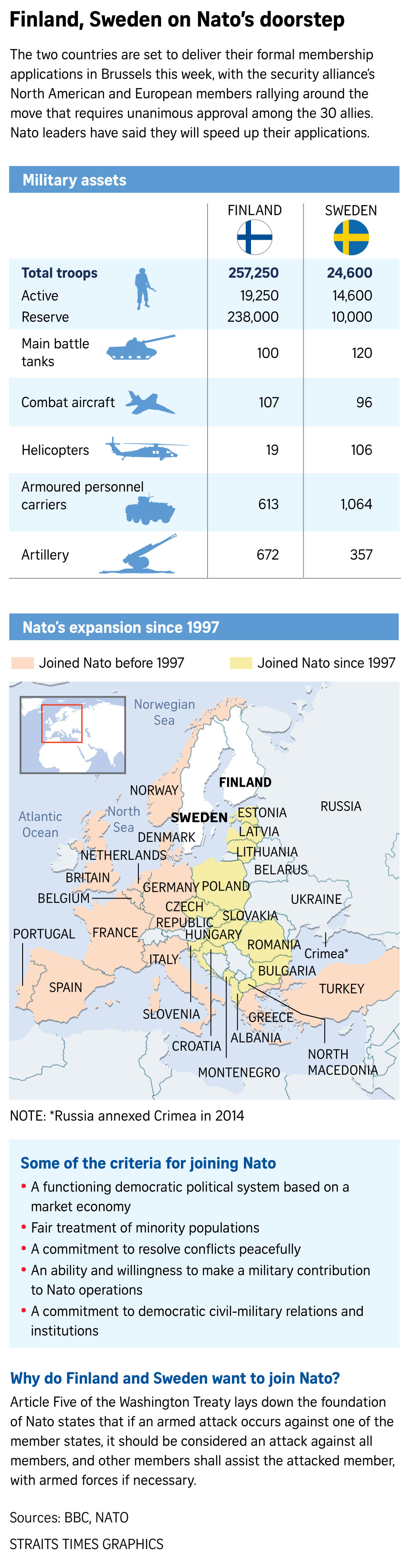 STOCKHOLM (REUTERS) - Sweden will formally apply for Nato membership in the next few days, Prime Minister Magdalena Andersson said on Monday (May 16), but its accession process, and that of Finland, hit a snag when Nato member Turkey’s president said he would not approve either bid.
