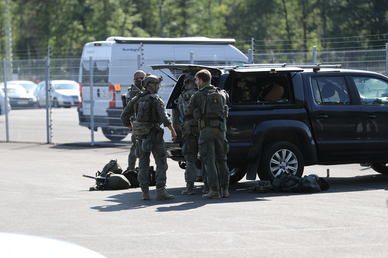 Police officers at Hallby Prison, outside Eskilstuna, Sweden, on July 21, 2021.