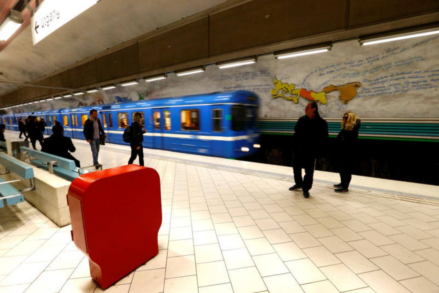 Commuters wait for a train at Stadshagen subway station in Stockholm, Sweden, May 9, 2017.