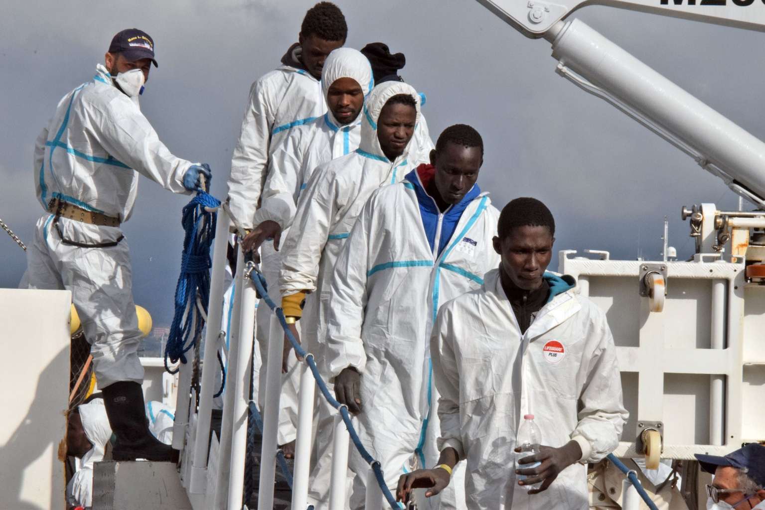 Men disembark from an Italian Coast Guard vessel following a rescue operation of migrants and refugees at sea on Feb 1 in the port of Messina, Sicily. Over 10,000 unaccompanied migrant children have disappeared in Europe, the EU police agency Europol said, fearing many have been whisked into sex trafficking rings or the slave trade.