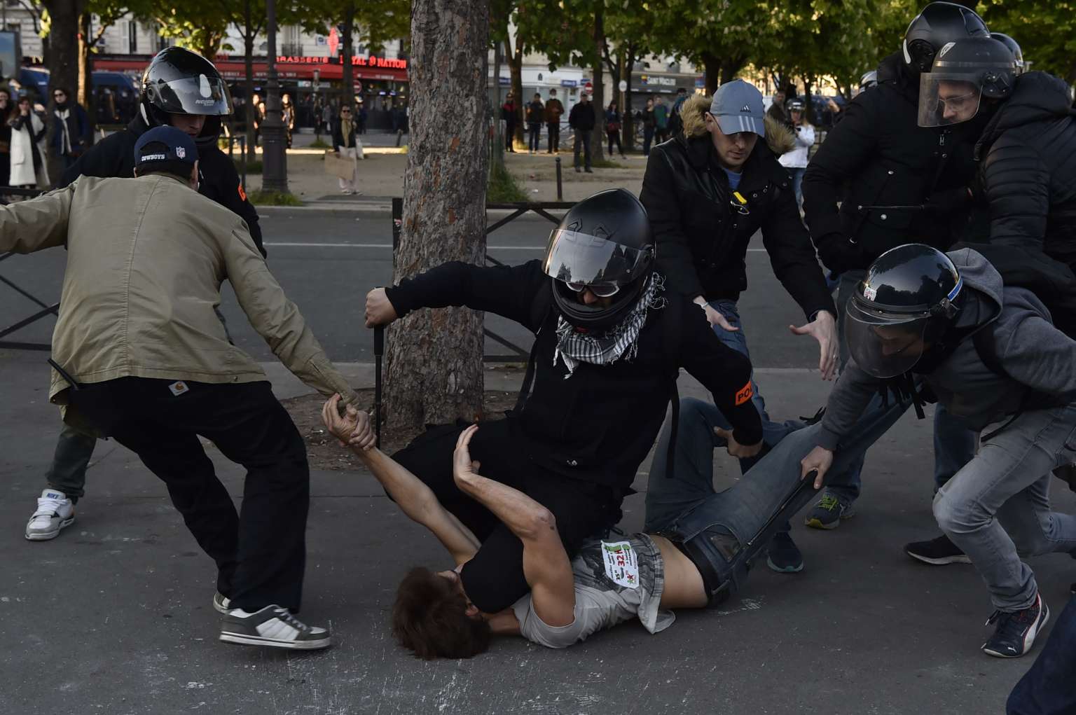 Plainclothes policemen arresting a man during clashes that broke out during the traditional May Day demonstration in Paris.