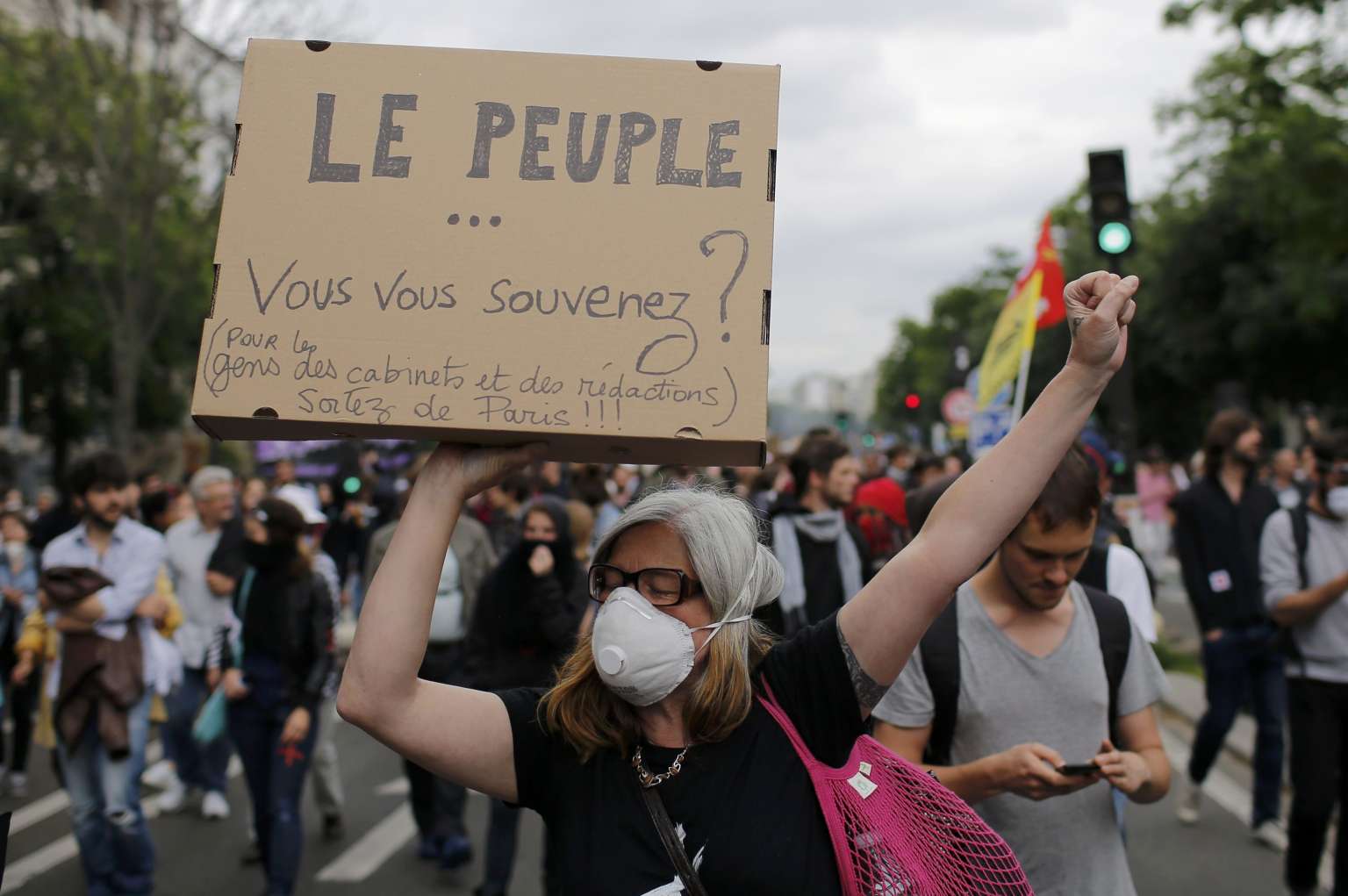 A woman holds a placard that says "The people, do you remember us ?" during a labour laws protest in Paris on June 28, 2016.