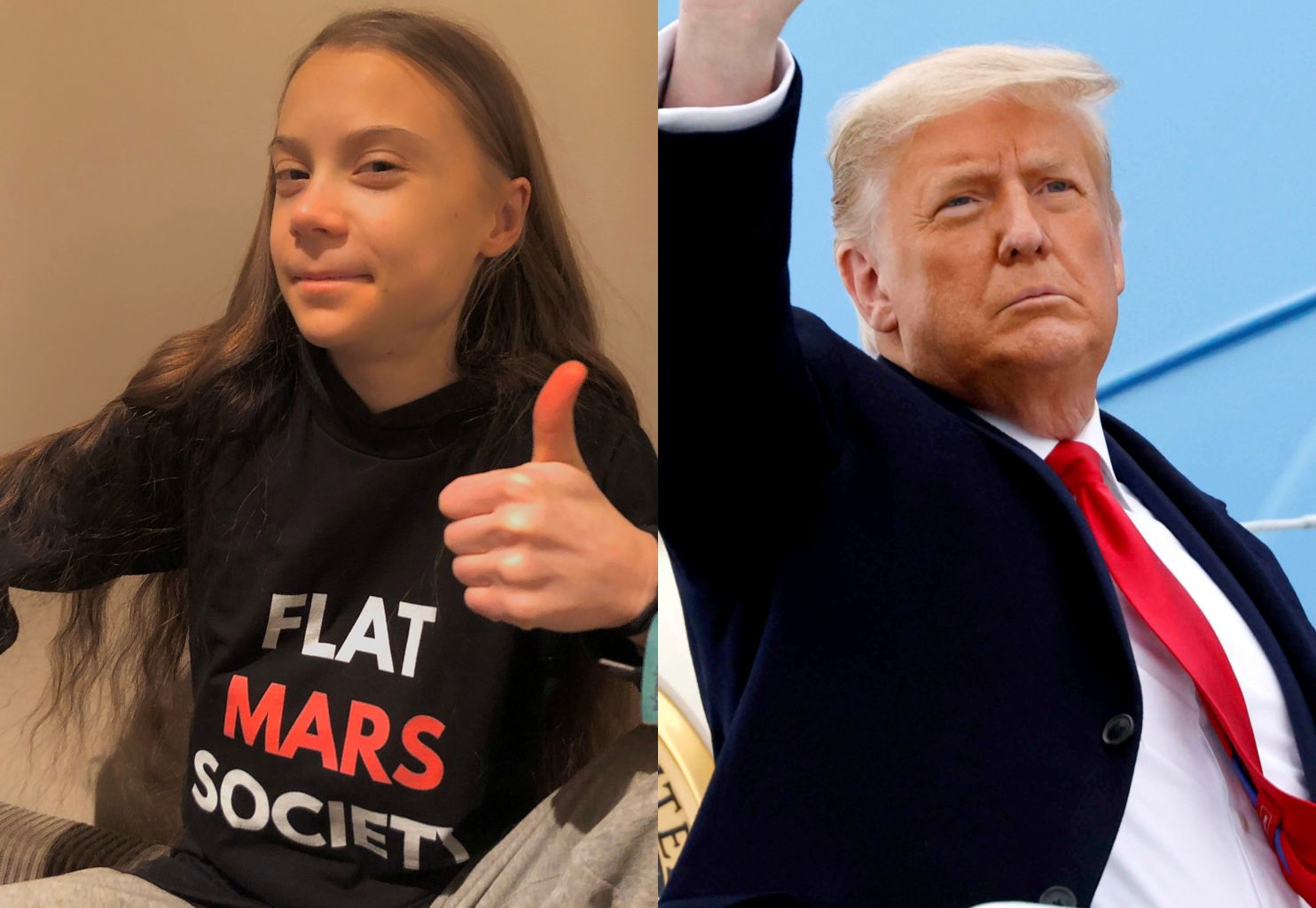 Thunberg (left, in a recent photo from her Instagram account) reversed a barb that Trump (right) had aimed at her in 2019.