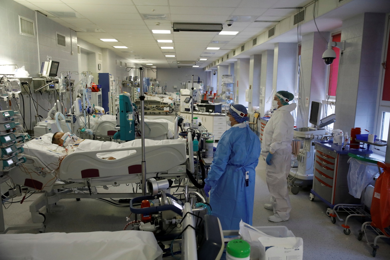 Medical staff treating patients in the Covid-19 ward at the Interior Ministry Hospital in Warsaw, Poland, on Nov 8, 2021.