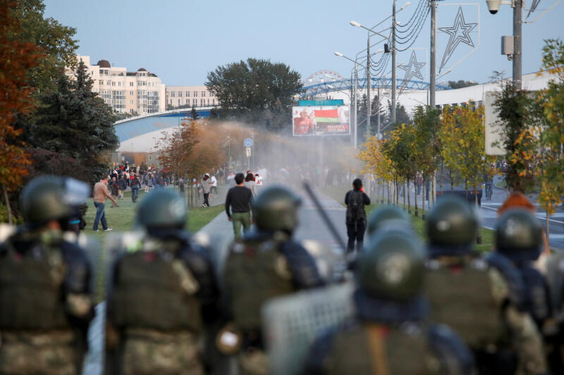 Belarusian police on Sunday used water cannon mounted on armoured police vehicles to disperse protesters and detained scores of protesters, Interfax news agency reported and videos on social media showed.