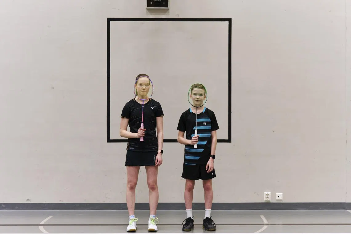 Siblings Henna and Niklas Hukari during badminton practice in Ylieviska, Finland, on Feb 22, 2023.