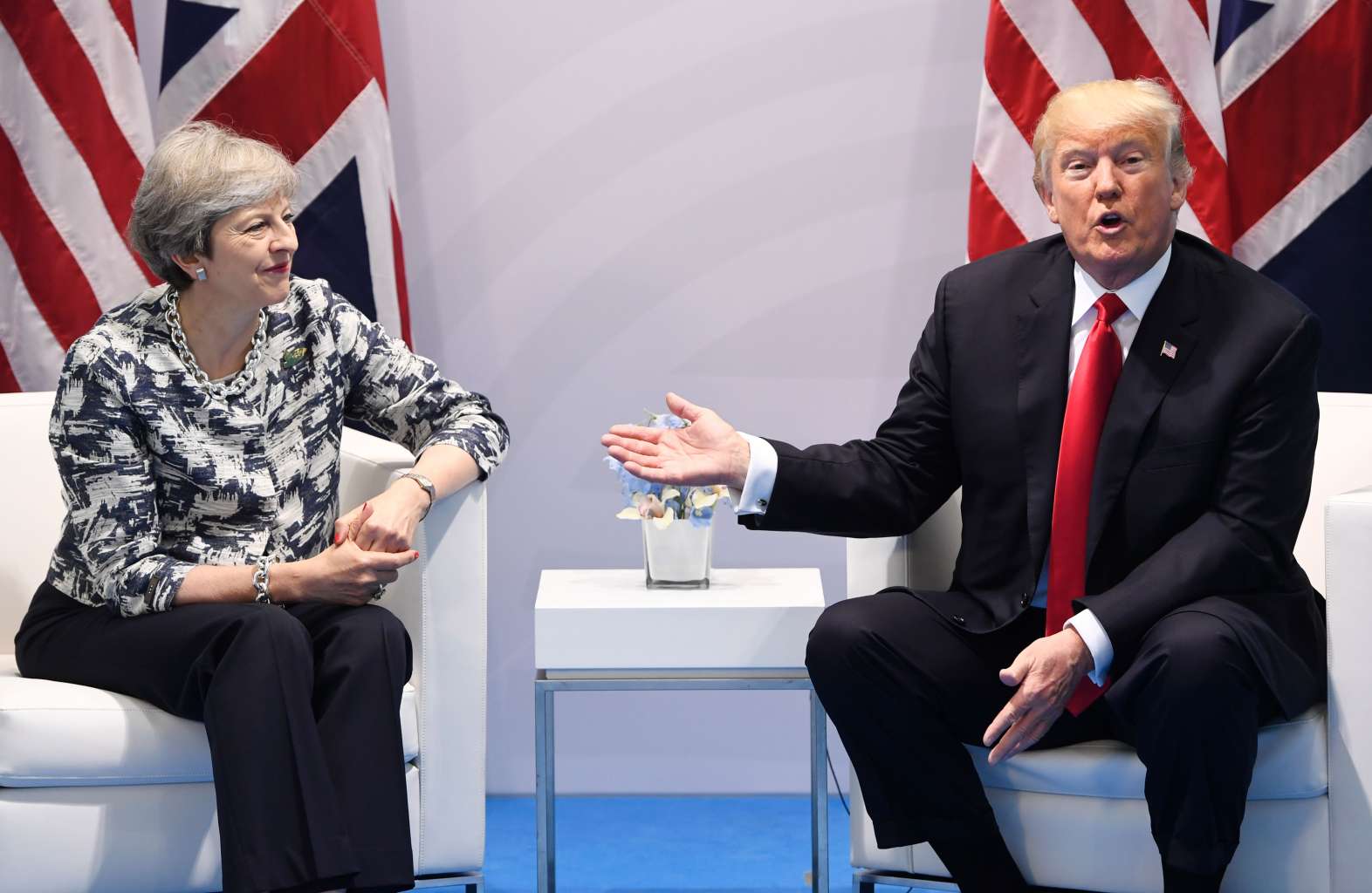 Donald Trump and Theresa May hold a bilateral meeting on the sidelines of the G-20 Summit.