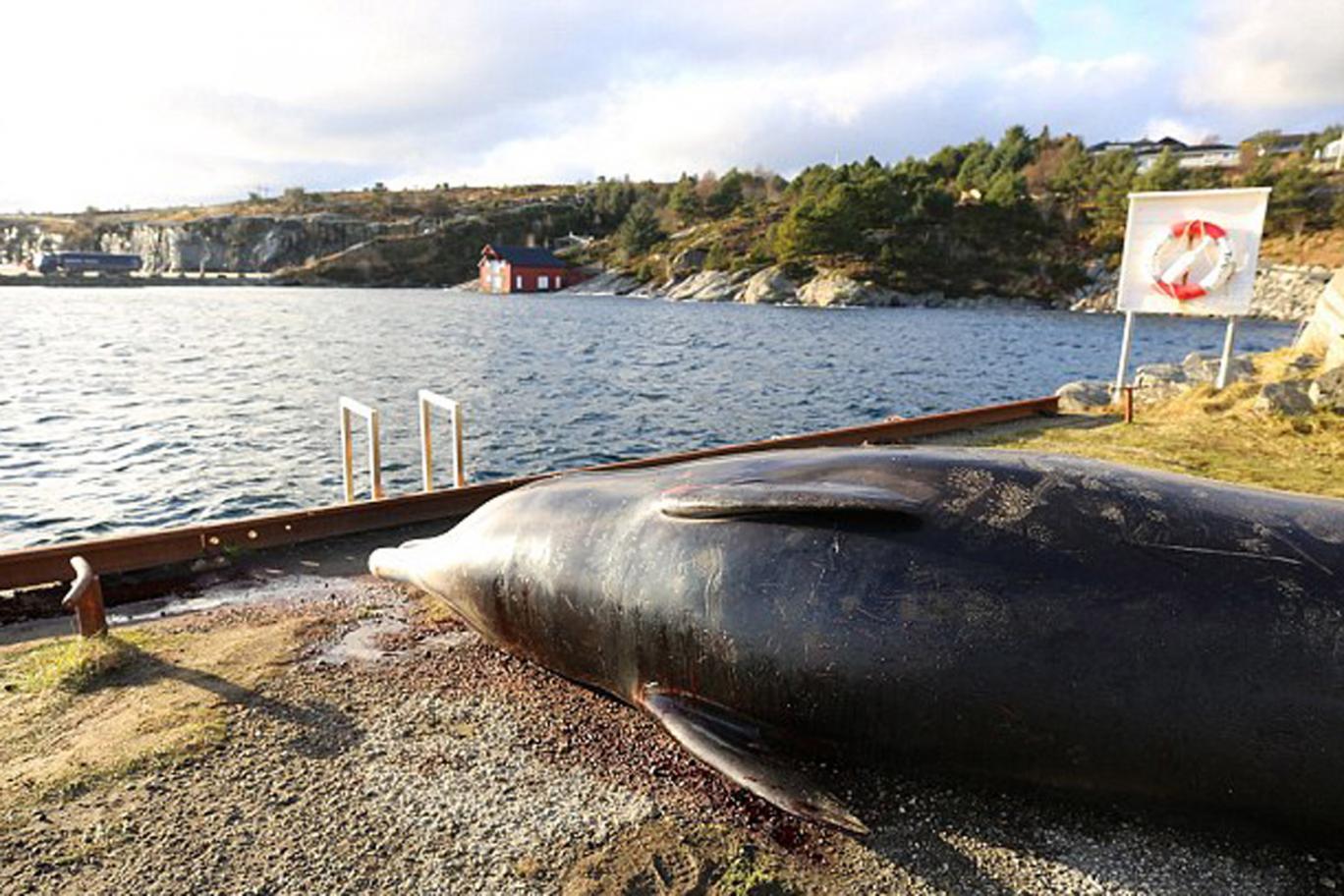 The goose-beaked whale was found stranded in shallow waters off the island of Sotra, 16km west of Bergen, and was in such poor health that wardens opted to put it down.