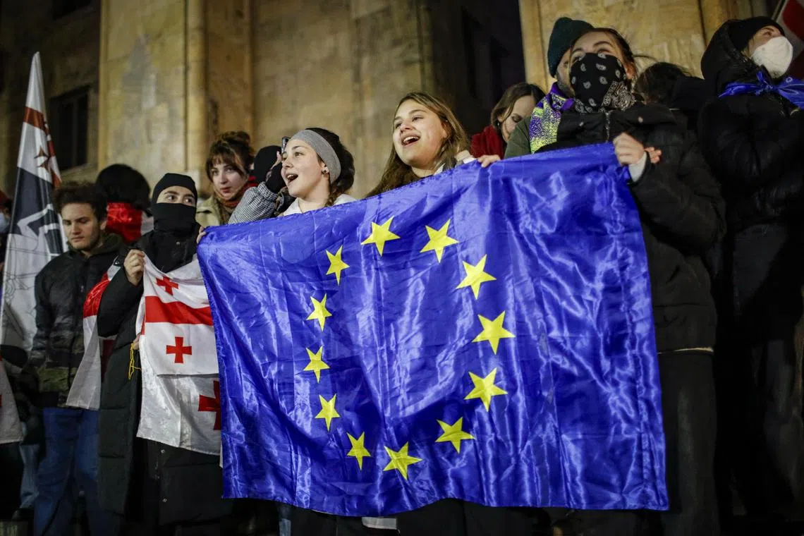 The country, long one of the most staunchly pro-Western states to emerge from the breakup of the Soviet Union but lately drawn closer into Moscow’s orbit, was thrown into crisis on Nov 28, when the ruling Georgian Dream party said it was halting European Union accession talks