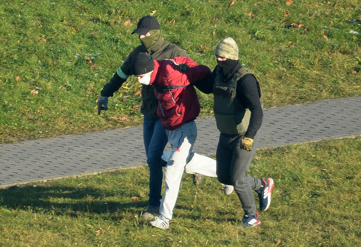 Police detain a man during an anti-government rally in Minsk, Belarus, Dec 6, 2020.