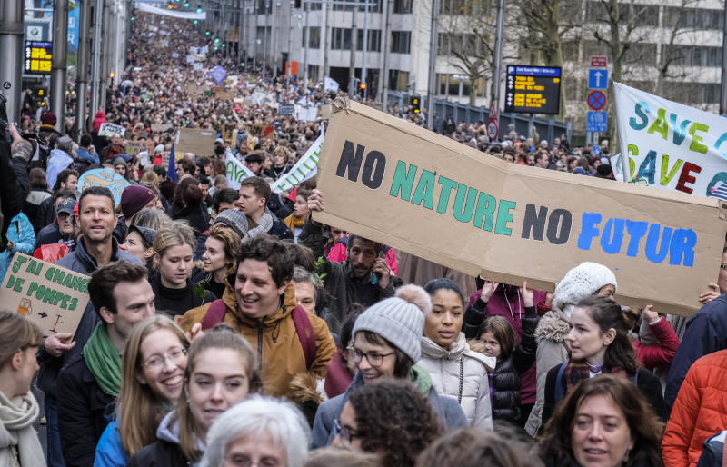 Thousands of people take part in a demonstration on climate change, in Brussels, Belgium, on Dec 2, 2018.