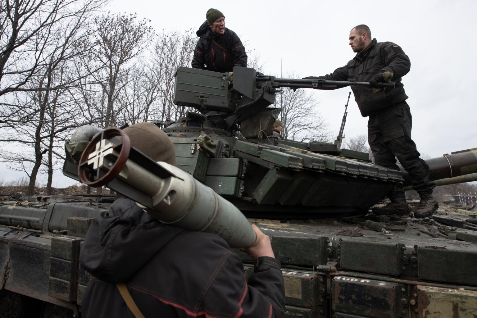 A Ukrainian military tank exercise in Donetsk Oblast, Ukraine, on Feb 17, 2022.