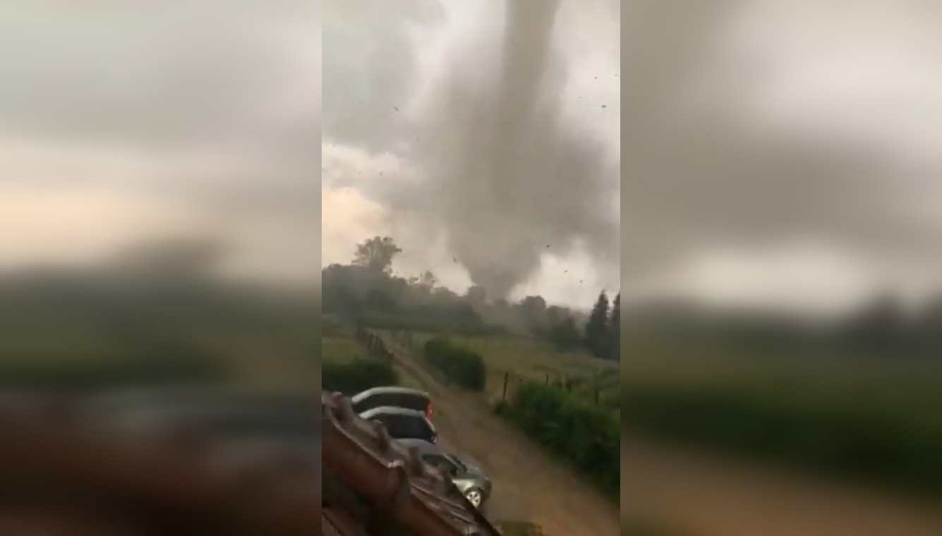 A screenshot from an online video said to show the tornado as it tears across the Czech landscape.