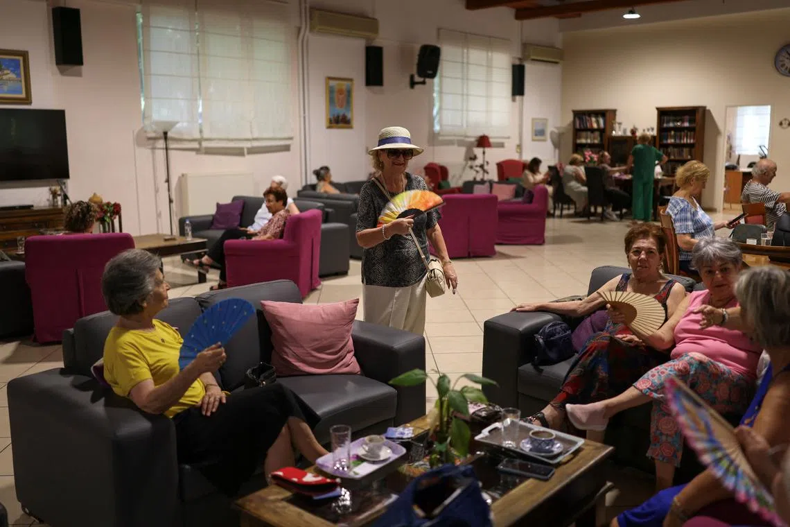 Elderly people sheltering from the heat on June 27 at a municipal cooling centre in Athens.