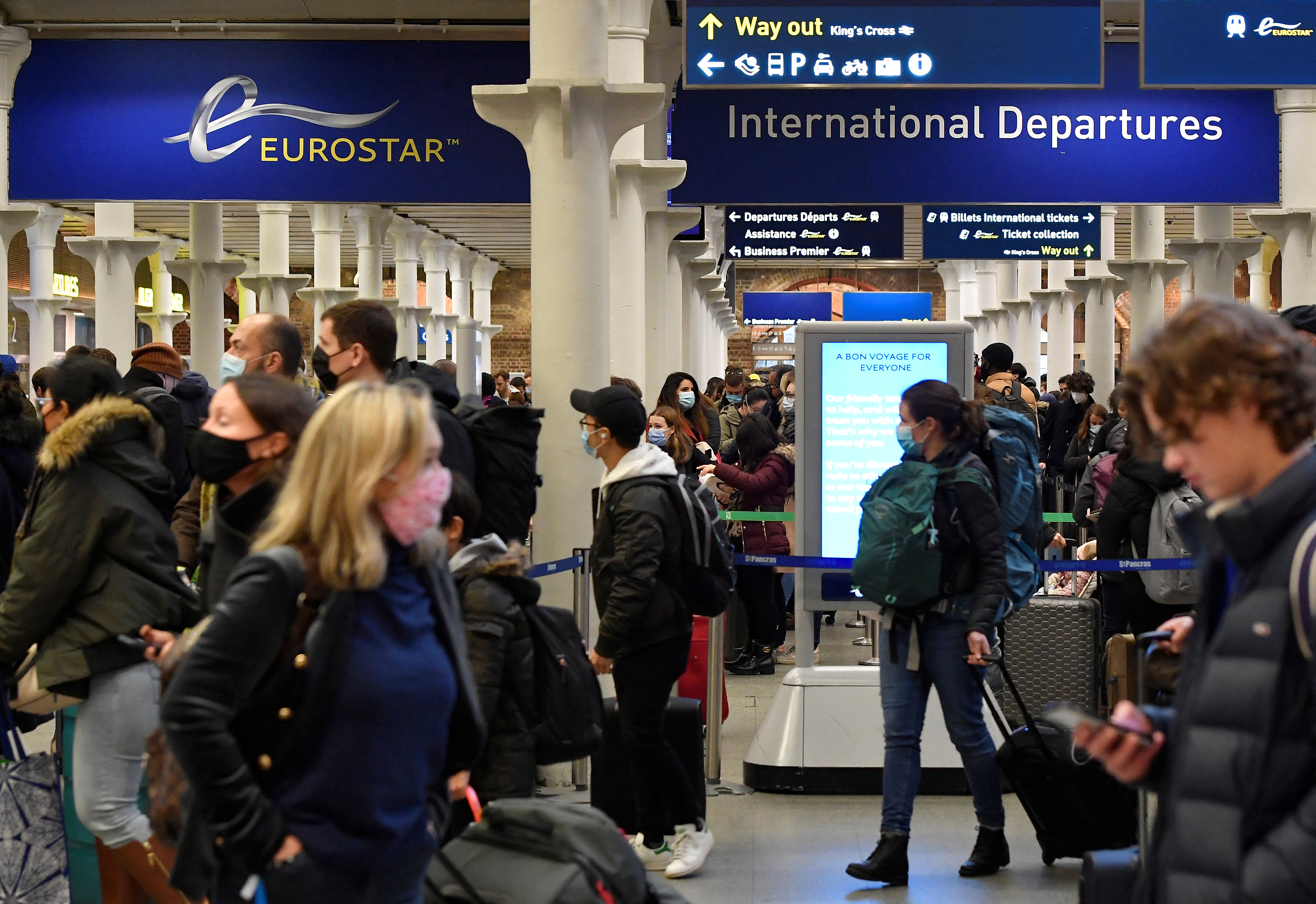 Passengers queue to board Eurostar trains at St Pancras International station, ahead of increased restrictions for travellers to France from Britain.