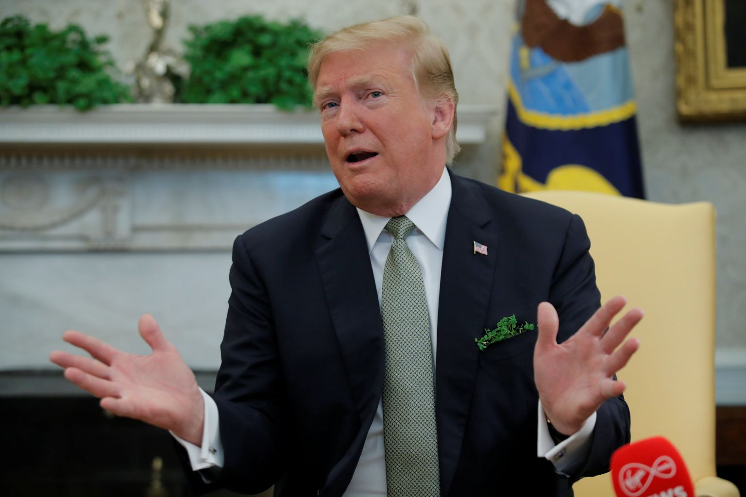 Trump speaks while meeting Ireland's Prime Minister Leo Varadkar at the White House.