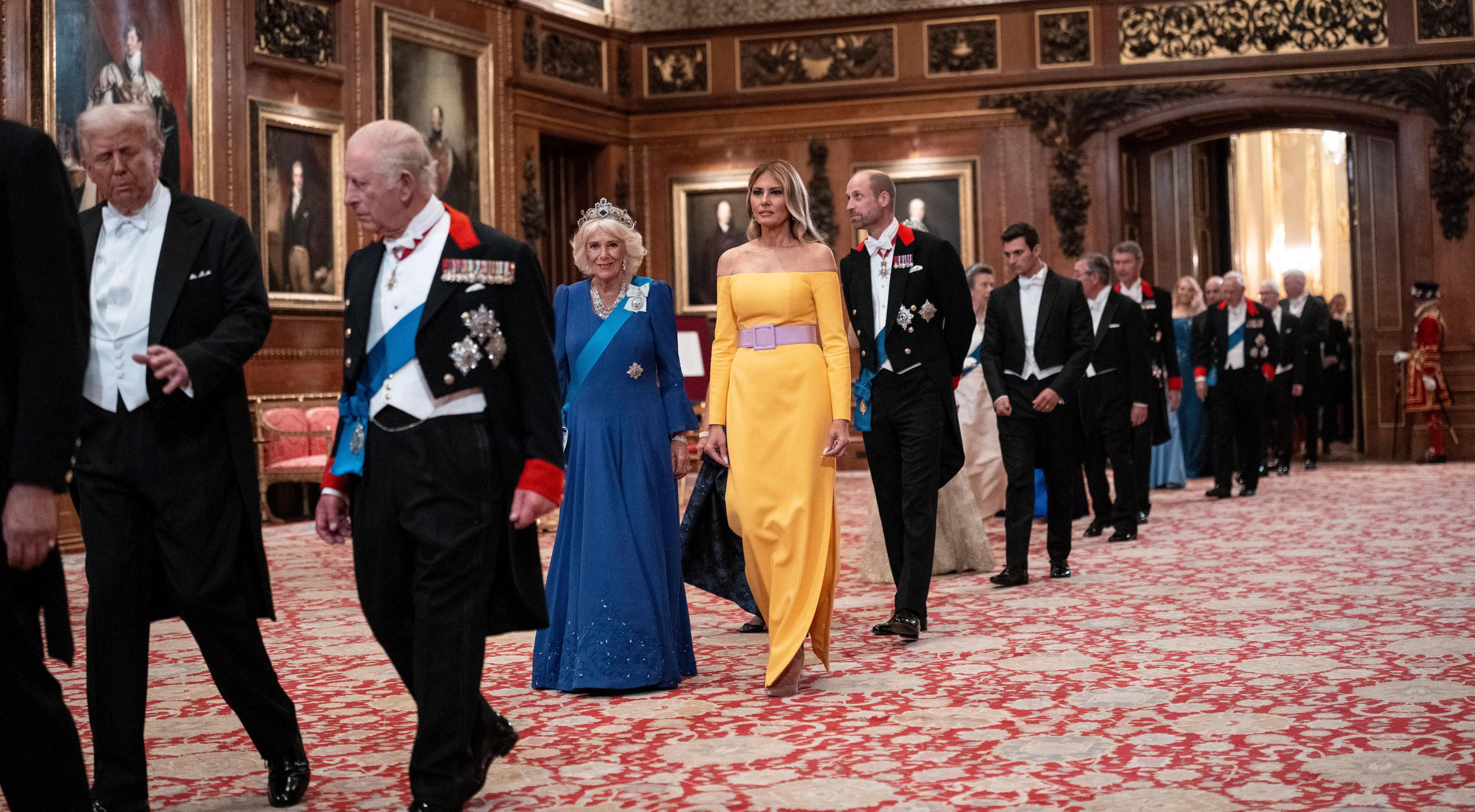 Mr Trump and Melania joined King Charles, his wife Camilla, and other royals and dignitaries for a carriage procession, with the route lined by 1,300 British service personnel.