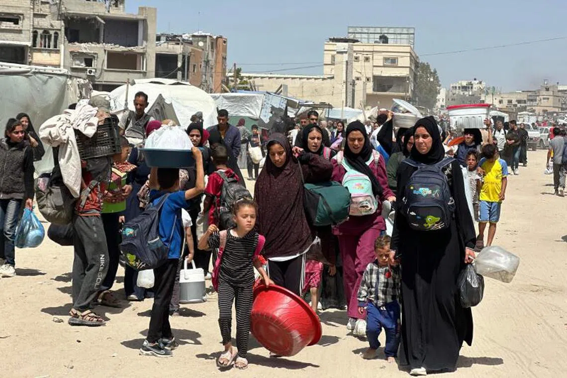 Palestinians fleeing homes in Khan Younis, Gaza, after the Israeli military issued evacuation orders.