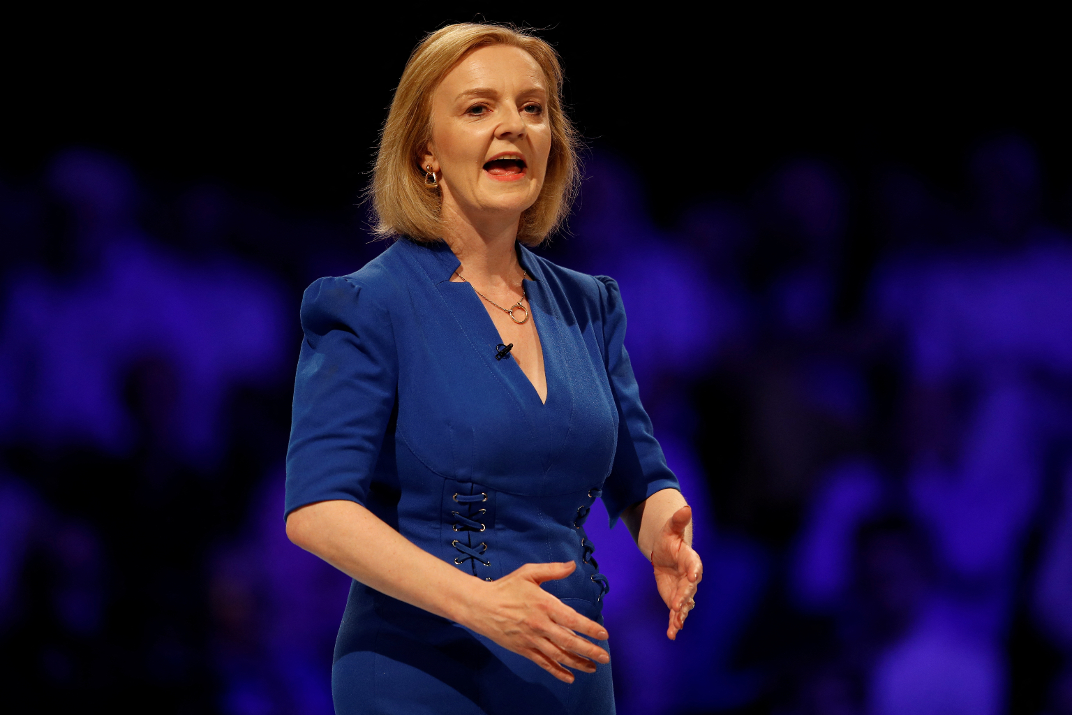 Conservative leadership candidate Liz Truss speaks during a hustings event in Exeter, on Aug 1, 2022.