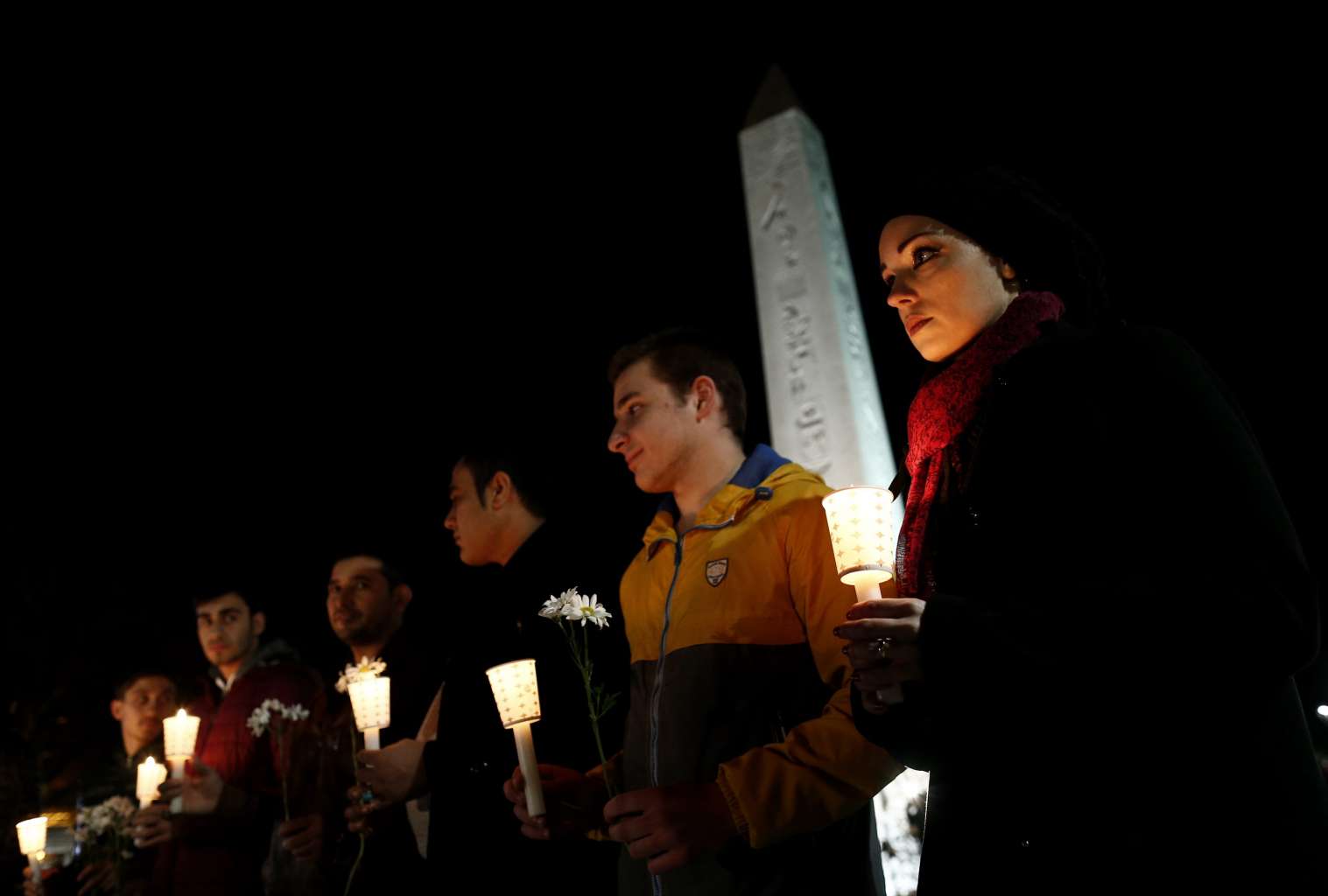 People hold candles and pray for victims who were killed in an explosion at the near by Sultanahmet in Istanbul on Wednesday.
