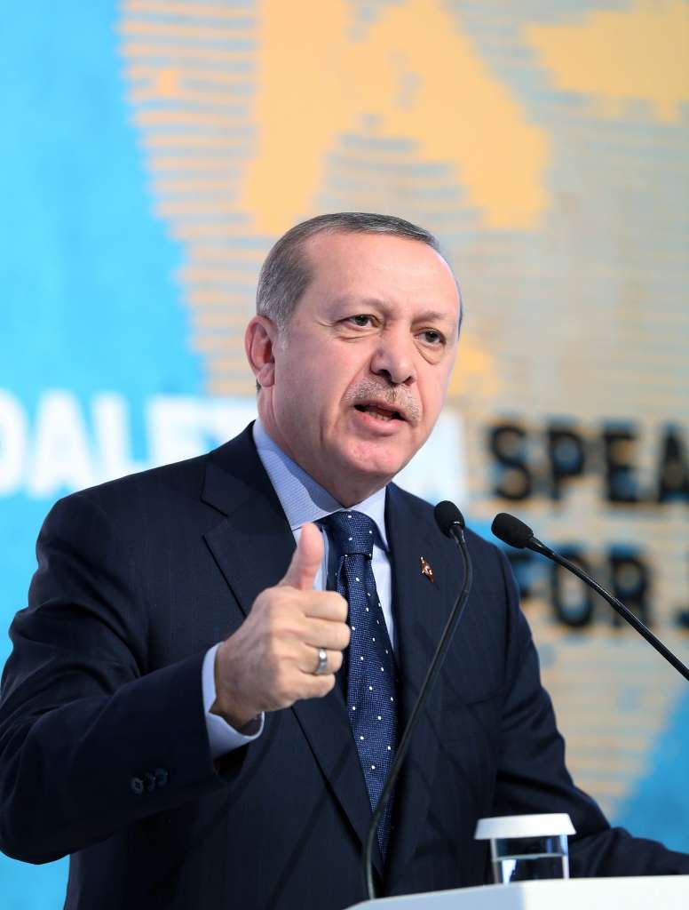 Turkey President Recep Tayyip Erdogan speaking during the International Women and Justice Summit in Istanbul on Nov 25, 2016.