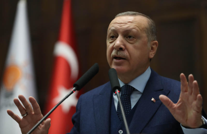President of Turkey and leader of the Justice and Development Party (AK Party) Recep Tayyip Erdogan delivers a speech during his party's group meeting at the Grand National Assembly of Turkey in Ankara, on Jan 30, 2018.