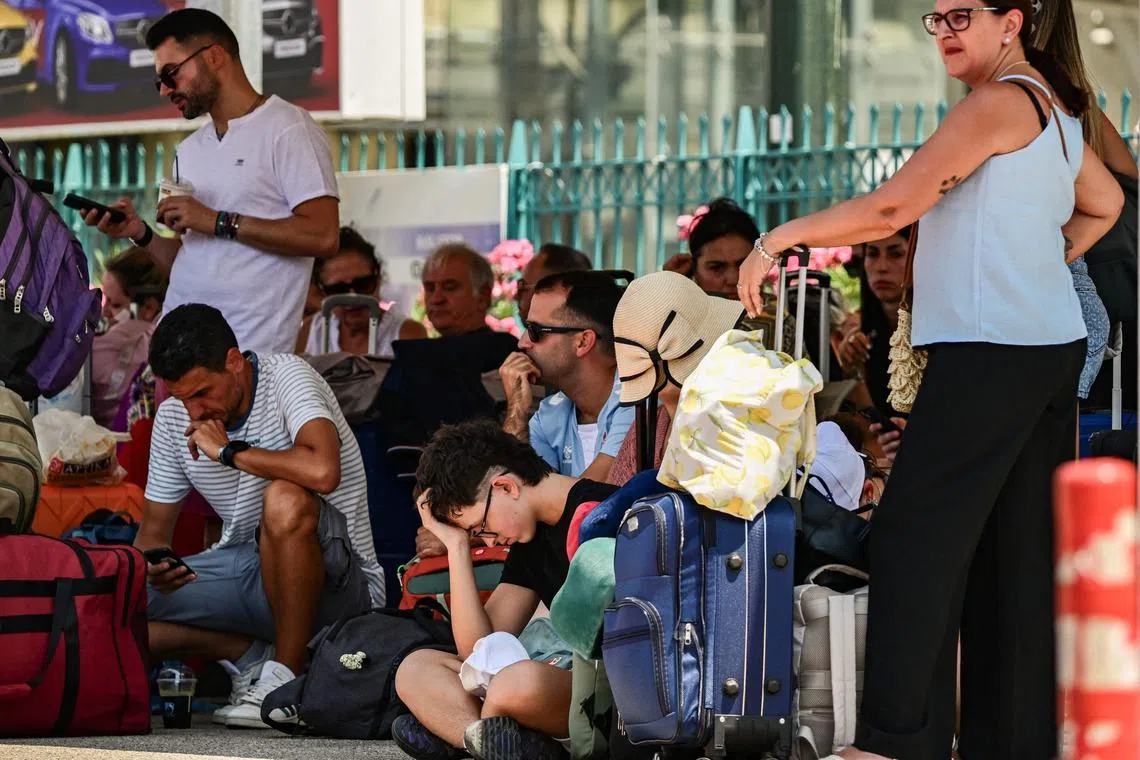 People waiting outside ticket offices at the port of Piraeus, near Athens, on Aug 8, 2025.