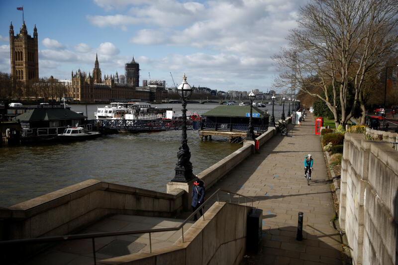 People are seen on South Bank, amid the coronavirus outbreak in London, Britain, on March 29, 2020.
