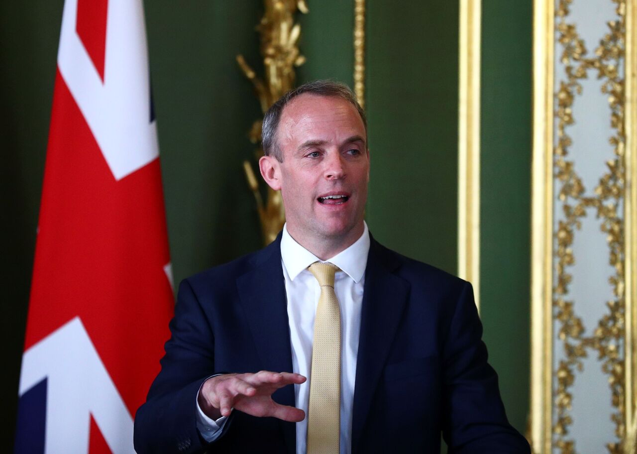 Britain's Foreign Secretary Dominic Raab during a meeting at Lancaster House in London on July 21, 2020.