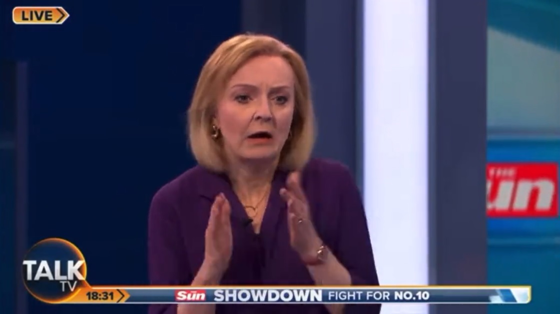 The debate, which was being hosted by Talk TV and the Sun newspaper and broadcast live, cut away with Truss looking visibly concerned.