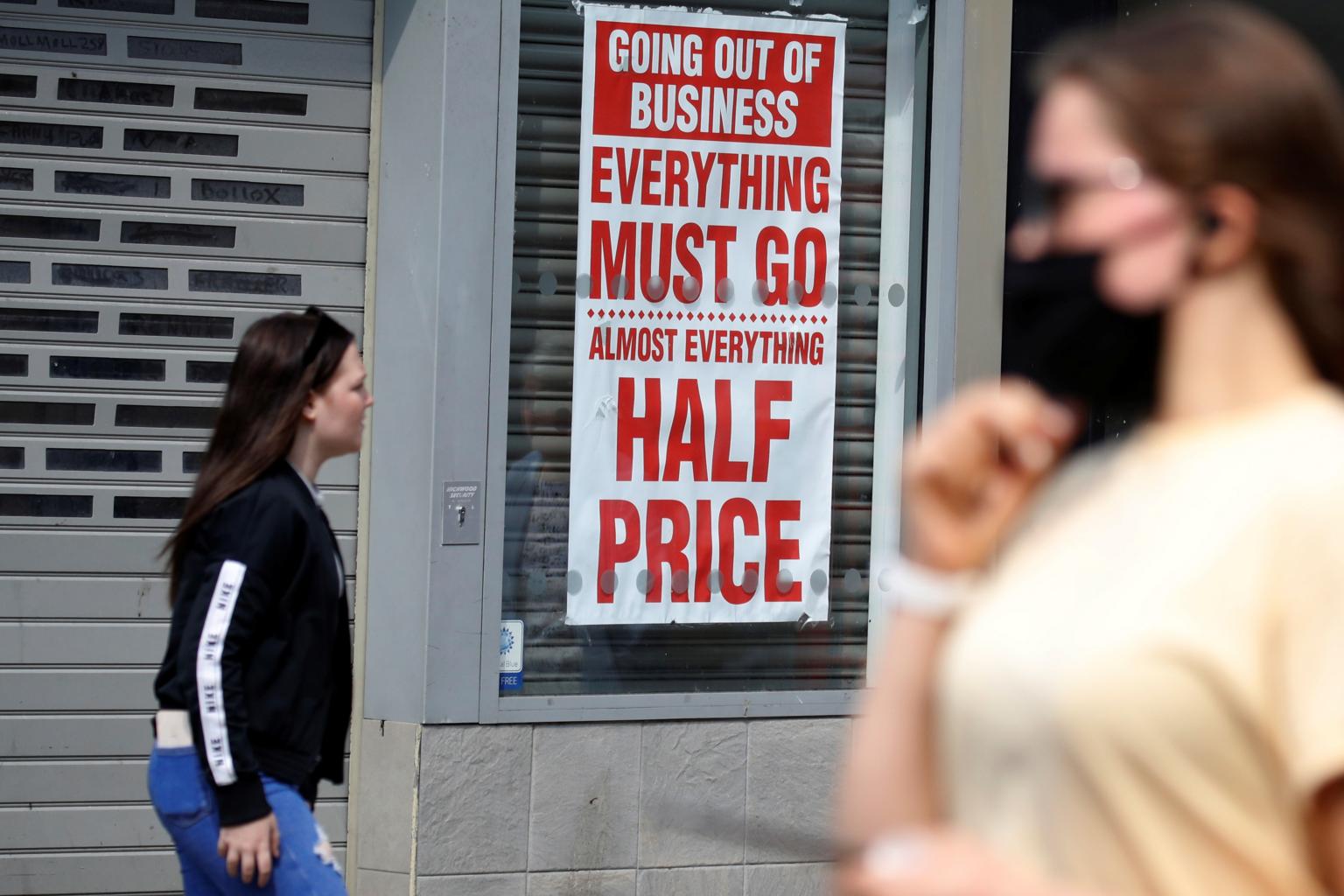 People walk past a closed shop in Chester, Britain, on Aug 10, 2020.