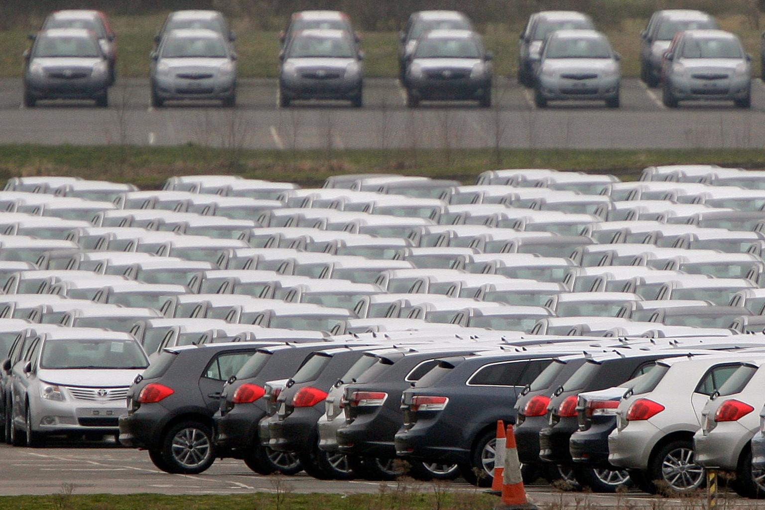 New cars are parked at Toyota's Burnaston plant near Derby, central England, on Feb 18, 2009.