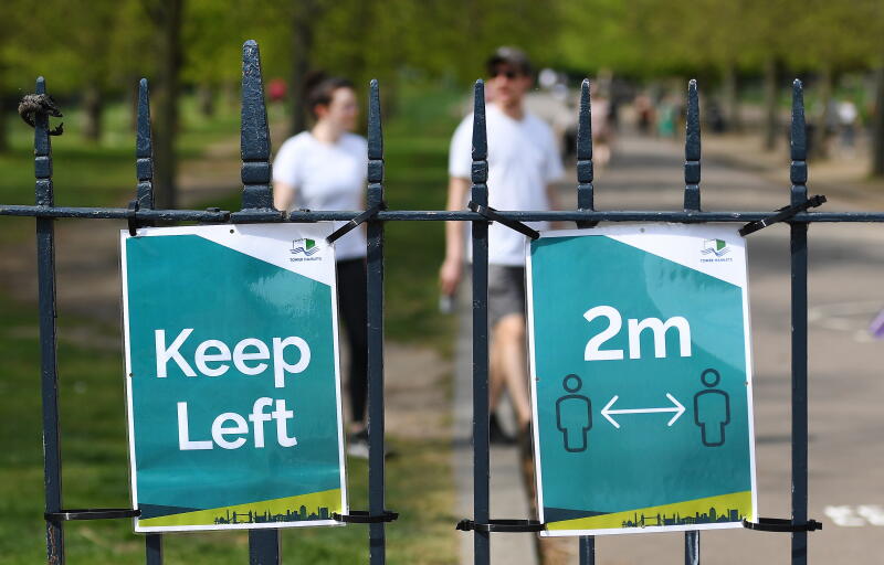 Social distancing public notices in London on April 12, 2020.