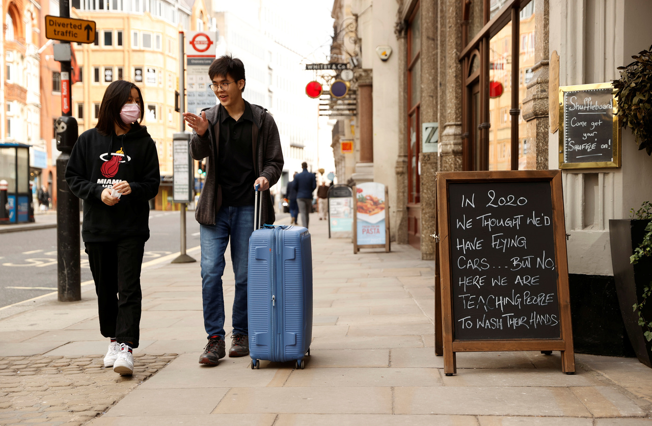 People walk past a pub in Fleet Street amid the coronavirus outbreak in London, March 18, 2020.