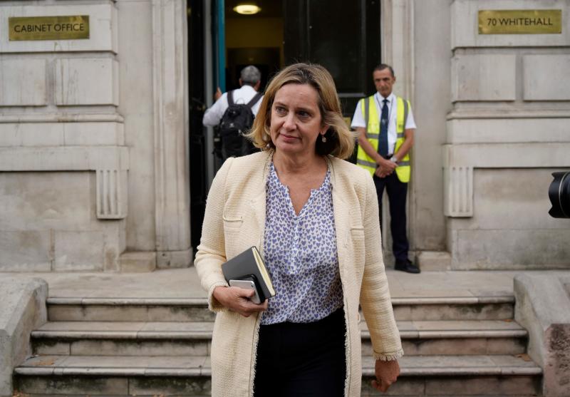 In a photo taken on Sept 3, 2019, British Work and Pensions Secretary and Women's minister Amber Rudd leaves the Cabinet Office on Whitehall in central London.