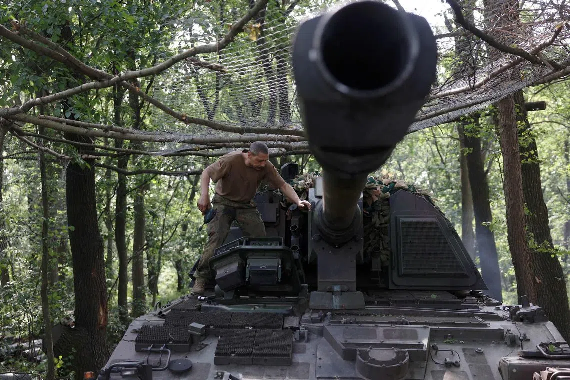 A Ukrainian serviceman of the 43rd Artillery Brigade works on a self-propelled howitzer on the front line near Bakhmut, in Ukraine’s Donetsk region.