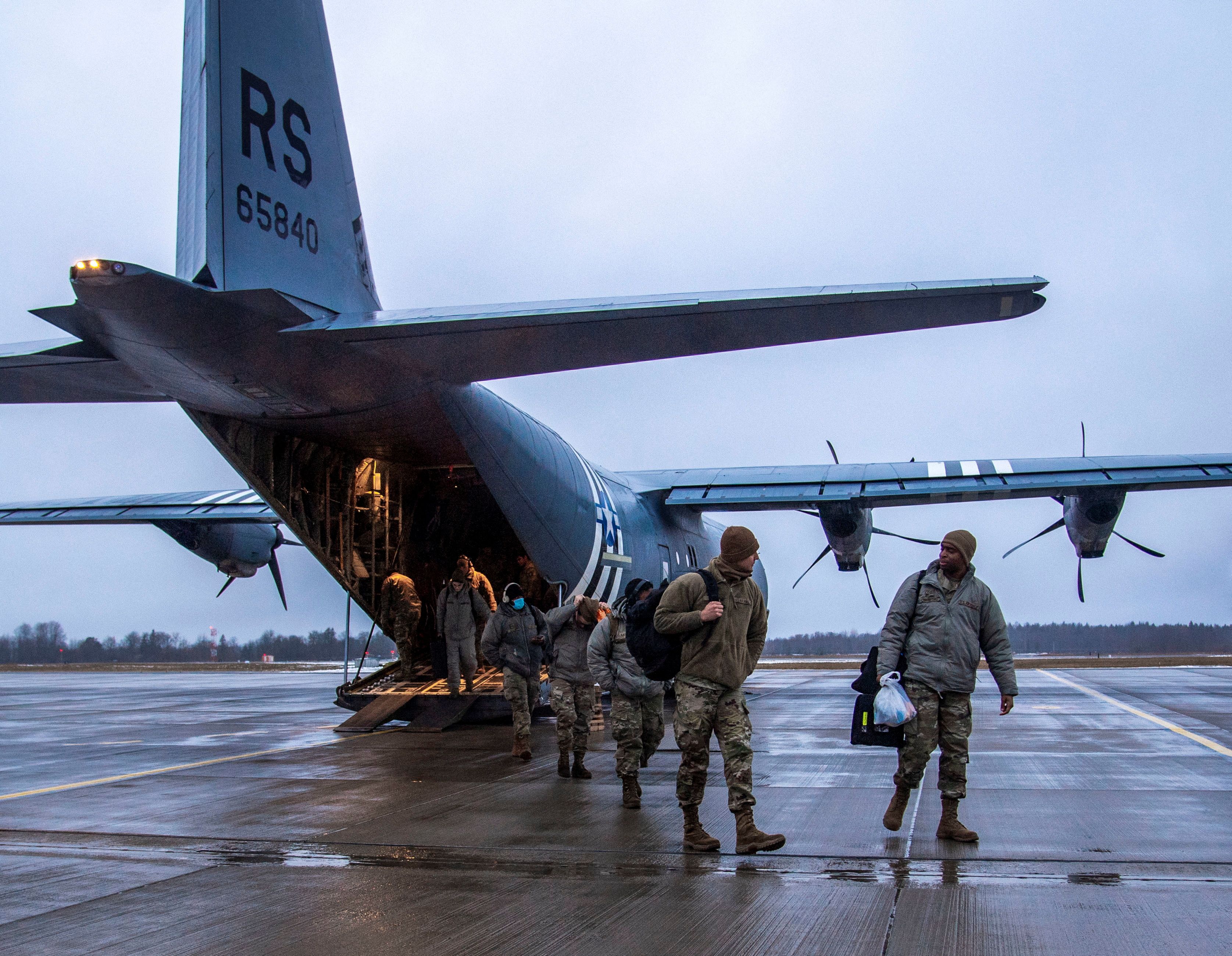 Airmen from the US and England arrive at Amari Air Base in Estonia on Jan 24, 2022.