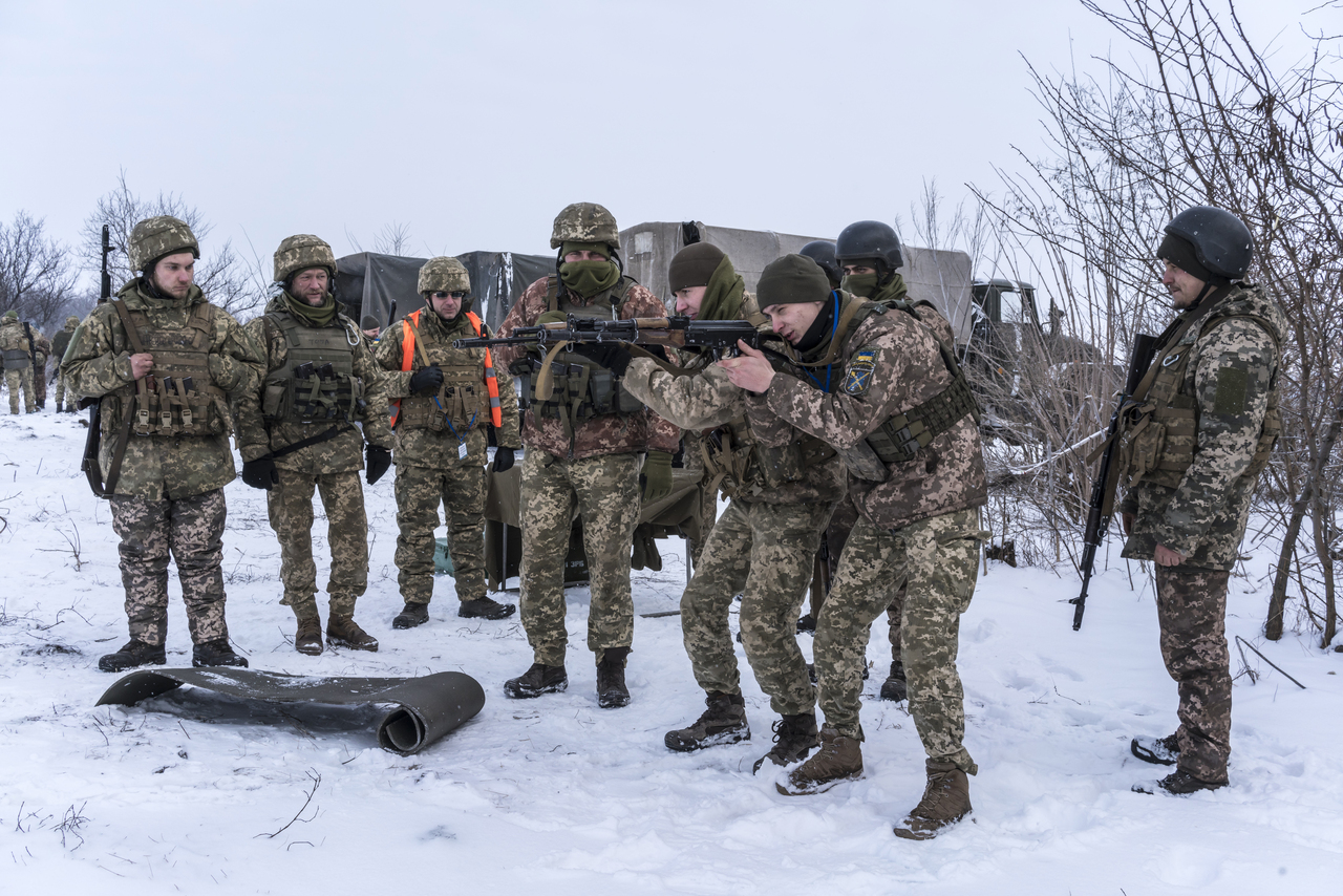 The Ukrainian Army’s 53rd Mechanized Brigade on a small-arms training exercise in Ukraine on Jan 27, 2022.