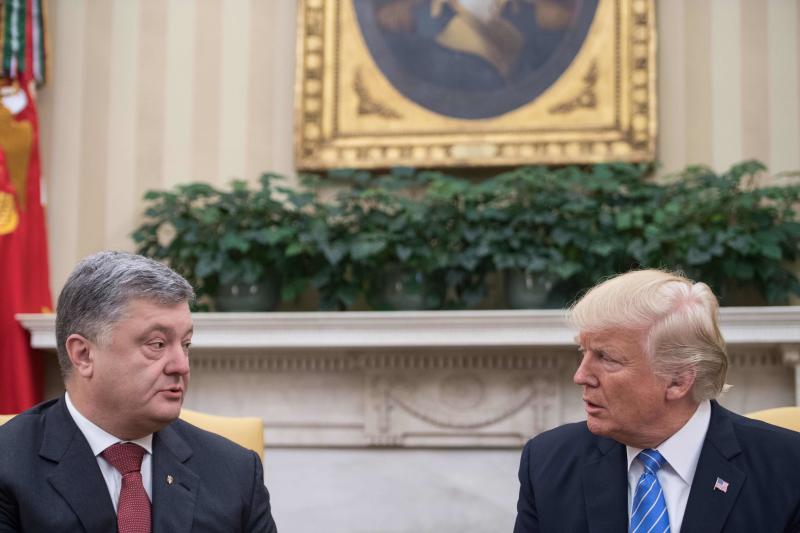 US President Donald Trump meets with his Ukrainian counterpart Petro Poroshenko in the Oval Office at the White House in Washington, DC, on June 20, 2017.