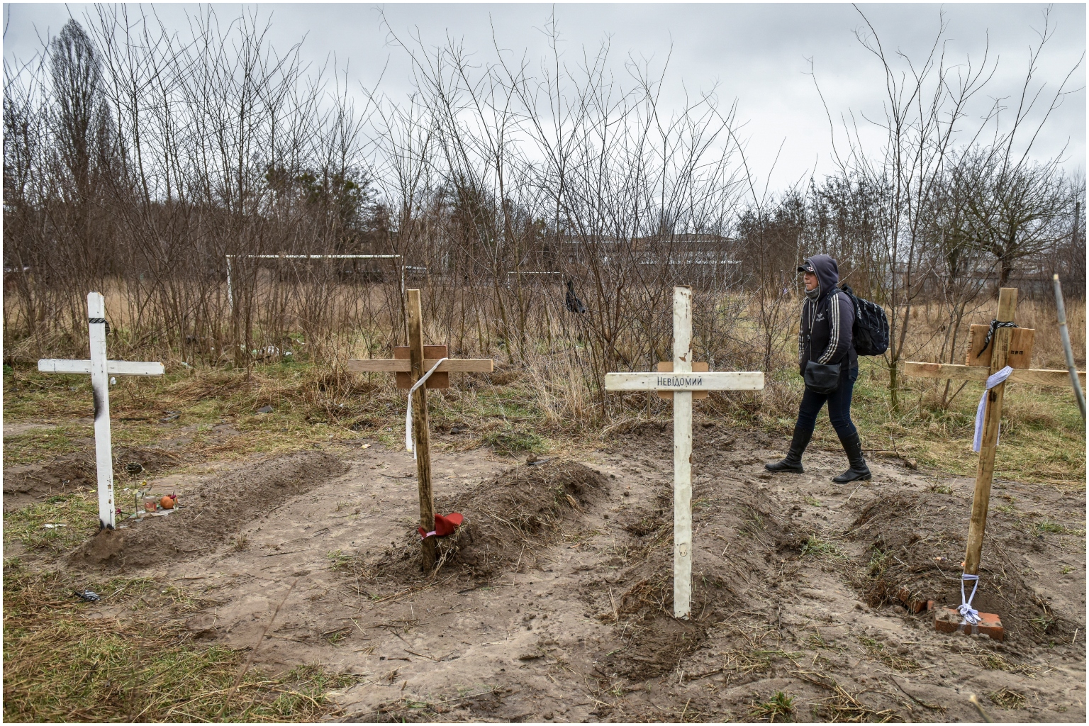 The graves of local citizens, who died during Russian invasion, in the city of Kyiv, Ukraine, on April 2, 2022.